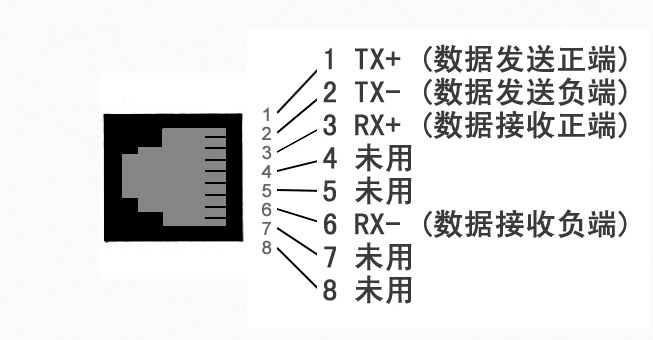 RJ45接口DCE类型引脚定义 从上图中我们可以看出,如果两DTE类型接口(或DCE类型接口)相连不交叉相连引脚的话,对触的引脚都是数据接收(发送)引脚,势必通信将不能进行。 另外需要说明:一些DCE类型设备会和对端自动协商,此时连接用交叉线或平行线均可